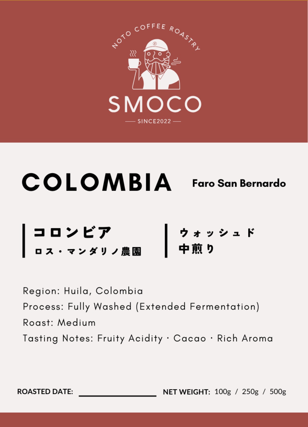 クリアで繊細な味わいを持つ豆を、その個性が活きるよう中煎りで仕上げています。